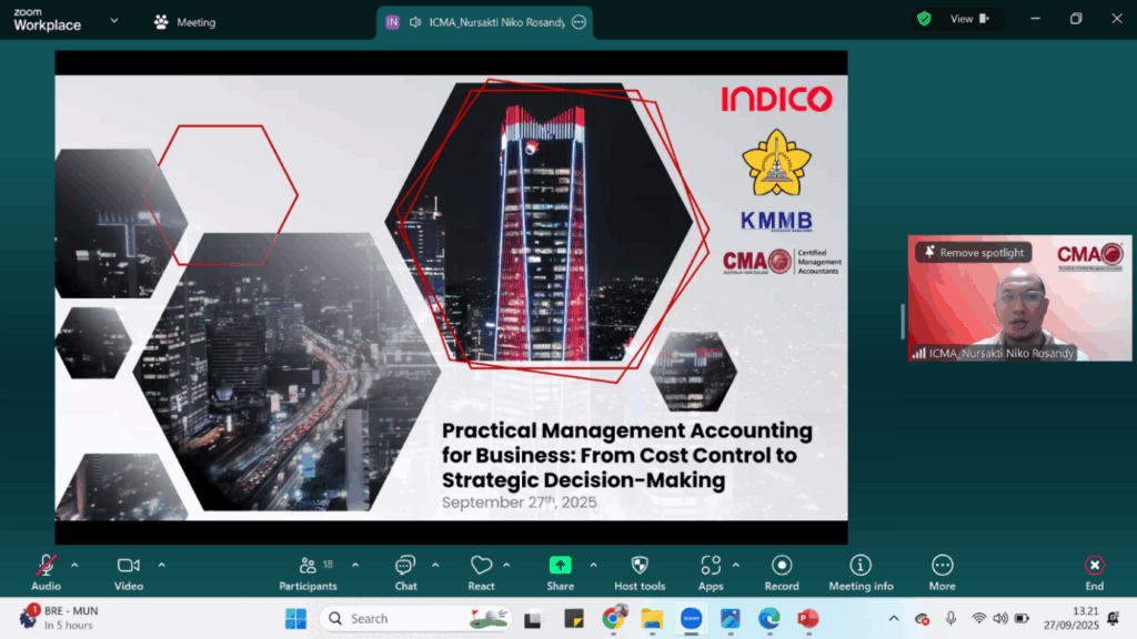 Dalam paparannya, Nursakti menyoroti peran akuntansi manajemen dalam pengambilan keputusan strategis bisnis, mulai dari penggunaan anggaran, perencanaan kinerja, hingga penyusunan informasi keuangan yang relevan. Ia juga menggarisbawahi pentingnya peran Financial Planning & Analysis (FP&A) serta Business Partner (BP) dalam membantu organisasi mengelola risiko sekaligus meningkatkan efisiensi operasional.