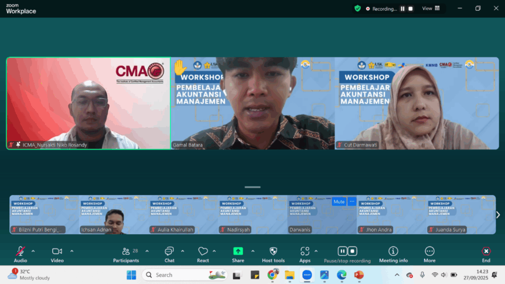 Darussalam – Departemen Akuntansi Fakultas Ekonomi dan Bisnis Universitas Syiah Kuala (FEB USK) sukses menyelenggarakan Workshop Pembelajaran Akuntansi Manajemen dengan tema “Practical Management Accounting for Business: From Cost Control to Strategic Decision-Making” pada hari Sabtu (27/09/2025). Kegiatan yang berlangsung di Gedung KPMG FEB USK ini dilaksanakan secara hybrid (daring dan luring) dan menjadi bagian dari upaya nyata FEB USK dalam mendukung Tujuan Pembangunan Berkelanjutan (SDGs) 4: Pendidikan Berkualitas.