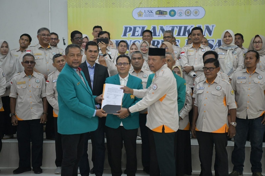 Darussalam– Fakultas Ekonomi dan Bisnis Universitas Syiah Kuala (FEB USK) kembali menegaskan komitmennya terhadap pembangunan berkelanjutan melalui peran aktif para alumninya. Ketua Umum Pengurus Pusat Ikatan Alumni Universitas Syiah Kuala (IKA USK), Amal Hasan, secara resmi mengukuhkan Irmawan sebagai Ketua Umum Pengurus Pusat Ikatan Alumni Fakultas Ekonomi dan Bisnis (PP Ikafensy) periode 2025–2030, dalam prosesi khidmat yang digelar di Balai Sidang FEB USK, Sabtu (25/10/2025).